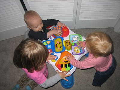 Here they are again...the three playing alongside eachother. Taite is the big cousin now...while "Coly and Ryl's" (as she calls them) scoot about...